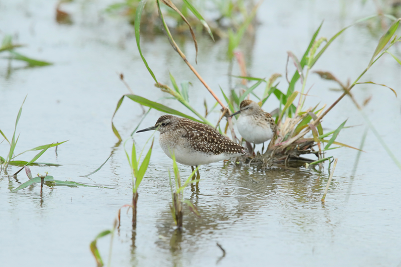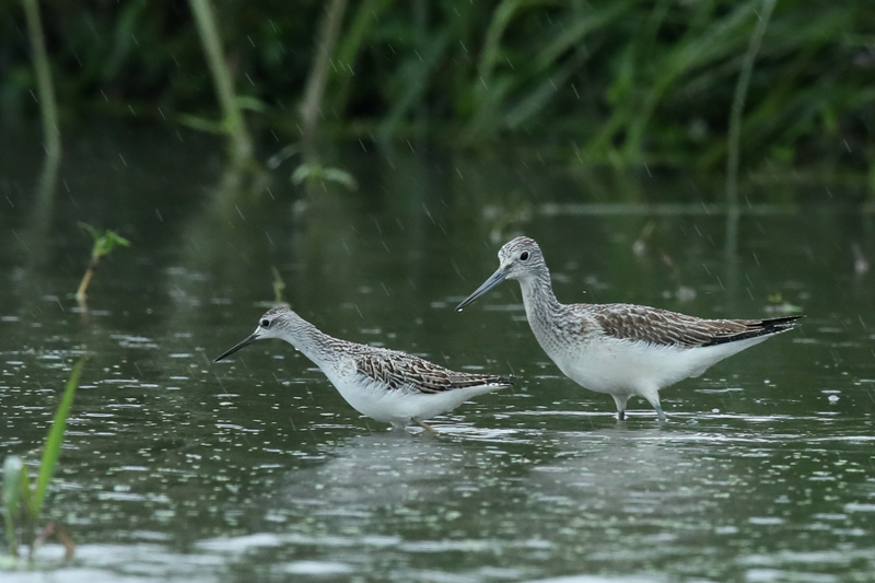 ![]() コアオアシシギ 幼鳥 (左) と アオアシシギ 幼鳥 2021年9月4日 長野県 安曇野市 |