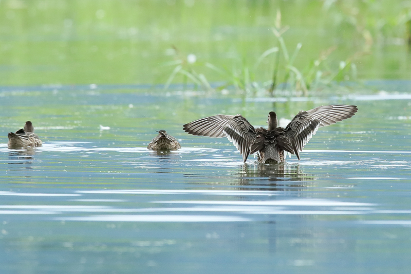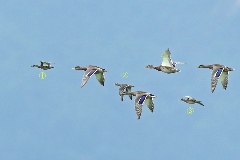 ![]() マガモ♂に混じって飛ぶ シマアジ 2021年9月2日 長野県 安曇野市 |