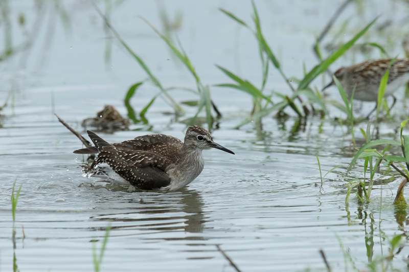 ![]() 水浴びをしている クサシギ 幼鳥 (奥はヒバリシギ) 2021年9月3日 長野県 安曇野市 |