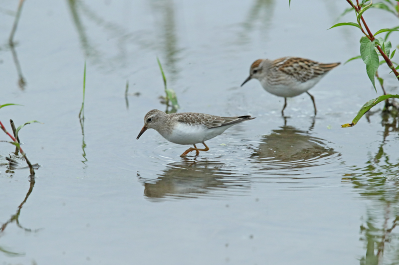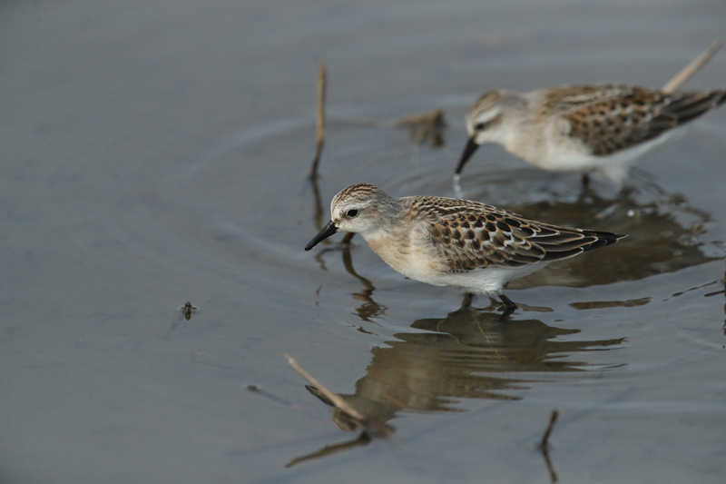 ![]() オジロトウネン 幼鳥 奥はヒバリシギ 幼鳥 2021年9月3日 長野県 安曇野市 |