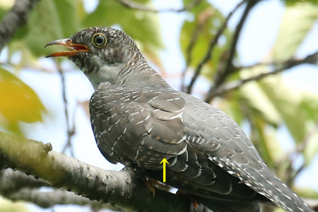 ![]() 初列風切 綺麗な斑がある カッコウ 幼鳥 2021年9月13日 長野県 安曇野市 |