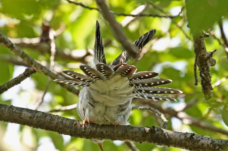 ![]() 尾羽は10枚 伸びをする カッコウ 幼鳥 2021年9月13日 長野県 安曇野市 |