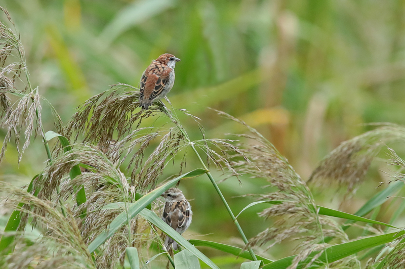 ![]() ニューナイスズメ 幼鳥♂(上) ♀(下) 第1回冬羽に換羽中 2021年9月22日 長野県 |