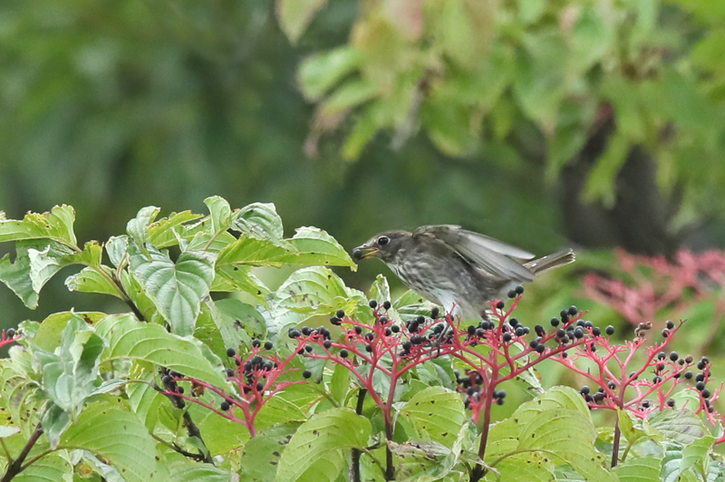 ![]() クマノミズキの実を食べる エゾビタキ 2021年9月29日 長野県 松本市 |