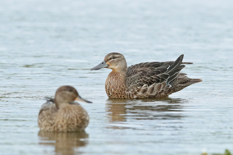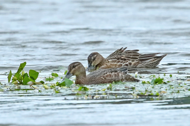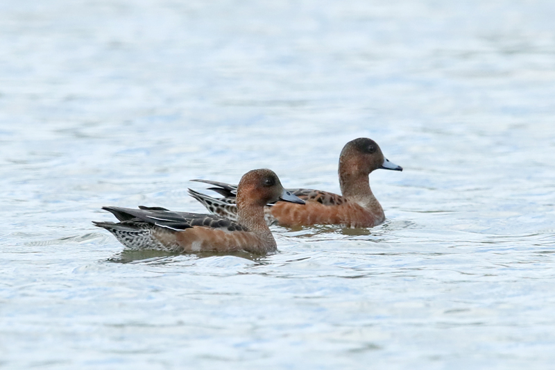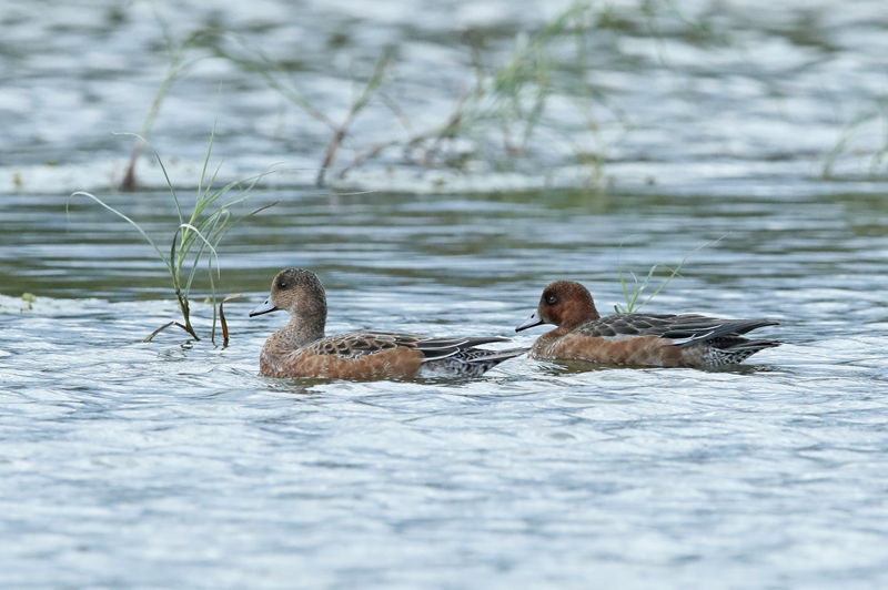 ![]() ヒドリガモ ♀(左) ヒドリガモ ♂(右) 2023年9月30日 長野県 安曇野市 |