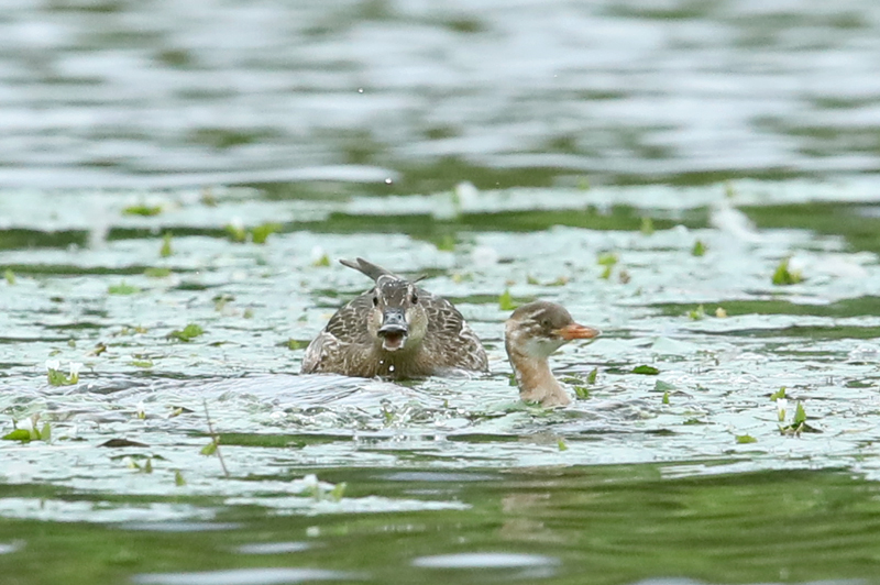 ![]() カイツブリの幼鳥を追い払う シマアジ ♀非生殖羽 2023年9月22日 長野県 安曇野市 |